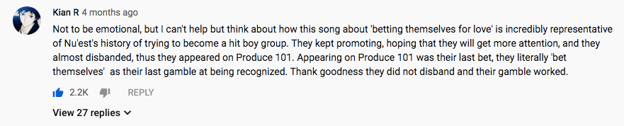 A comment on the significance of the MV title garnered over 2000 likes, showing the huge amount of interest fans have for this topic.