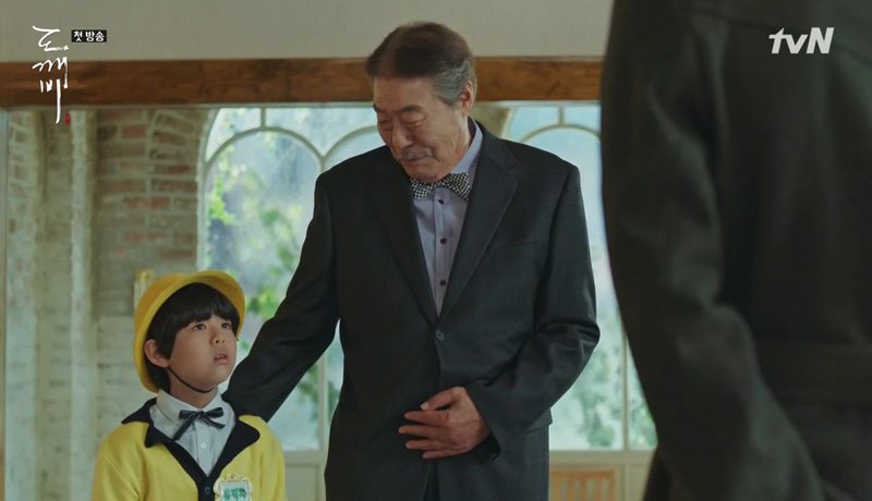Deok-hwa being introduced to Kim Shin by his grandfather Photo Credit: tvN