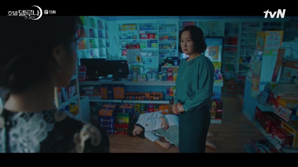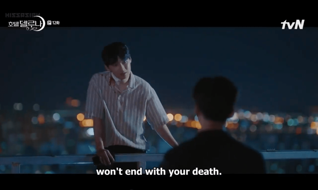 For the ghost employees of Hotel del Luna, the hotel enables them to work out their grudges. For example, the longest employee of the hotel and the Sky Bar’s bartender, Kim Seon-bi, waited at the hotel for a chance to clear his name after committing suicide as a result of getting wrongfully accused of being a “salacious scholar”, for writing stories about the lives of commoners. Ji Hyun-joong, the hotel’s receptionist, was also motivated to stay at the hotel because of his wish to see that his friend takes care of his sister as a punishment for accidentally killing him. Likewise, Choi Seo-hee, the hotel’s housekeeper buys time at the hotel due to her strong wish to avenge her daughter’s death and see her in-laws’ family die out with its last heir. Lastly, for Manwol, her role as the owner of the hotel is a test by the deities for her to empty her need for revenge.
