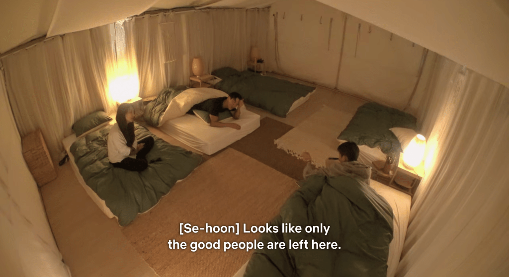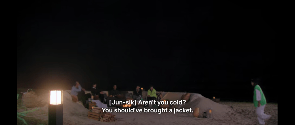 In a blink and you’ll miss it moment, you can see someone else’s hand waving together with Yeawon. I’m guessing it was Junsik as he was the one who told everyone that the helicopter was leaving. Yeawon is like the brightest ball of sunshine and Junsik is like the perfect person who matches well with her. Photo Credit: Netflix