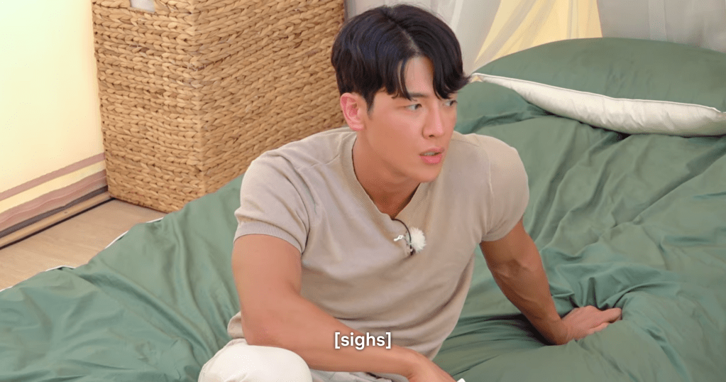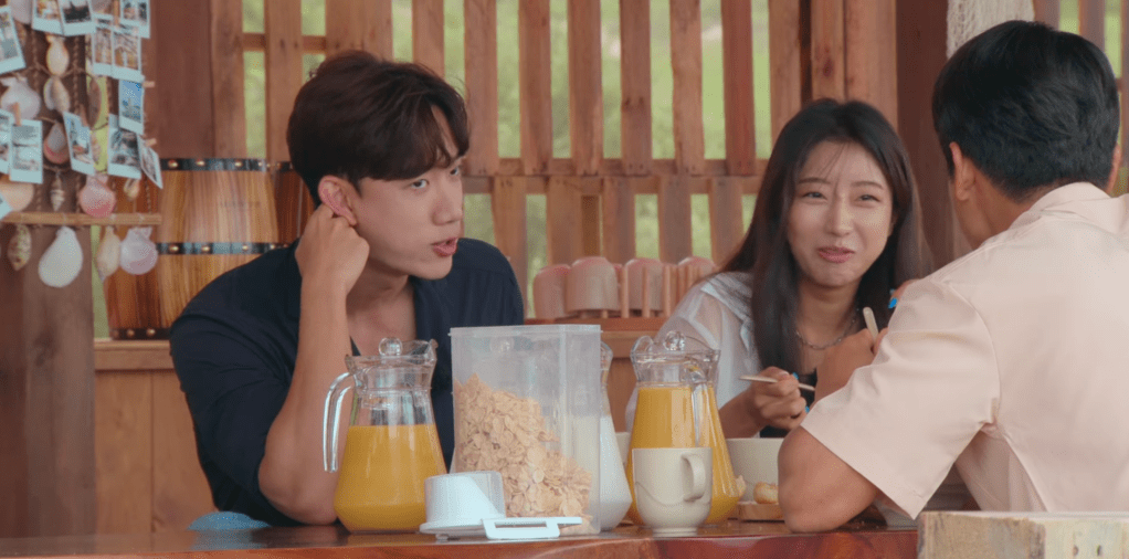 From the disjointed conversation between Yeawon, Junsik, Sehoon and Jiyeon (because things were chaotic with the guys all fighting to catch the girls for a chat), it seemed like Yeawon brought her workout shoes to Paradise to go workout with Junsik in the morning but was disappointed that Junsik did not wake her up so both of them ended up working out alone(?). Wanting to do hobbies together is such a Yeawon thing because she did mention many times before that she liked how Junsik and her share a love for working out.