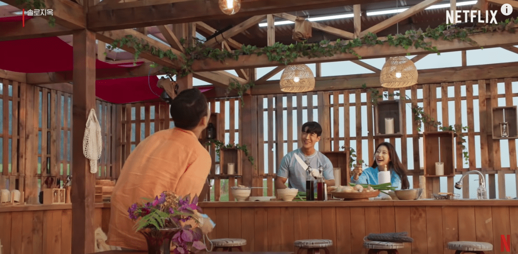 *Bonus* I squealed when I saw this on my second watch. Yeawon looks like she was helping Junsik to put on an apron? So girl was making more moves during that cooking session on the first day? Photo Credit: Netflix